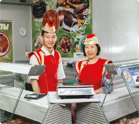 Ежедневно здесь предлагают покупателям свежайшее мясо свинины, баранины, говядины, конины и разнообразной птицы. Вам на выбор на торговых витринах представлена продукция местных предприятий и фермеров, широкий ассортимент свежего и свежемороженного мяса, полуфабрикатов, мясо-колбасных изделий и различных приправ.