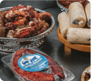 - орёомог, печень в рубашке, казы, кровяная колбаса, рулет из арбина, конская печеночная колбаса, химэ (говяжья колбаса);