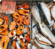 - копченая, соленая, свежая рыба, рыбные котлеты и многое другое.